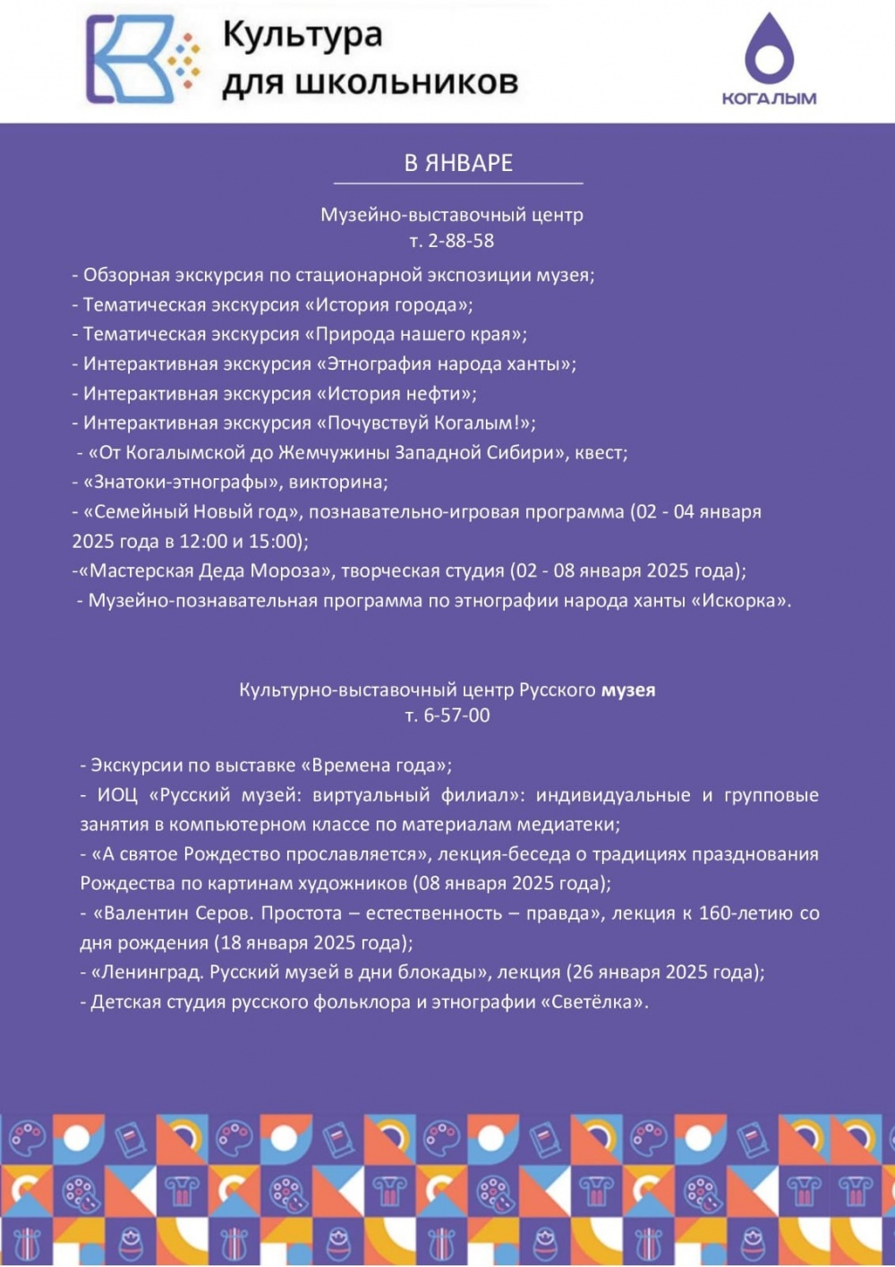КУЛЬТУРА ДЛЯ ШКОЛЬНИКОВ И ПУШКИНСКАЯ КАРТА ЯНВАРЬ 2025