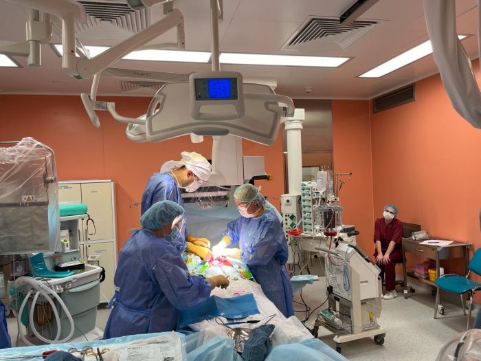 Мультидисциплинарная бригада специалистов провела кесарево сечение с эмболизацией маточных артерий с применением рентгенэдоваскулярных технологий. Также использовали аппаратную реинфузию аутоэритроцитов. В результате операции на свет появился здоровый мальчик 8-9 баллов по Апгар (вес: 2450 гр, рост: 47 см).